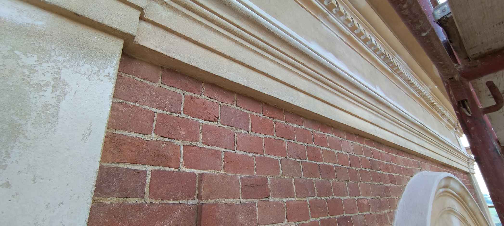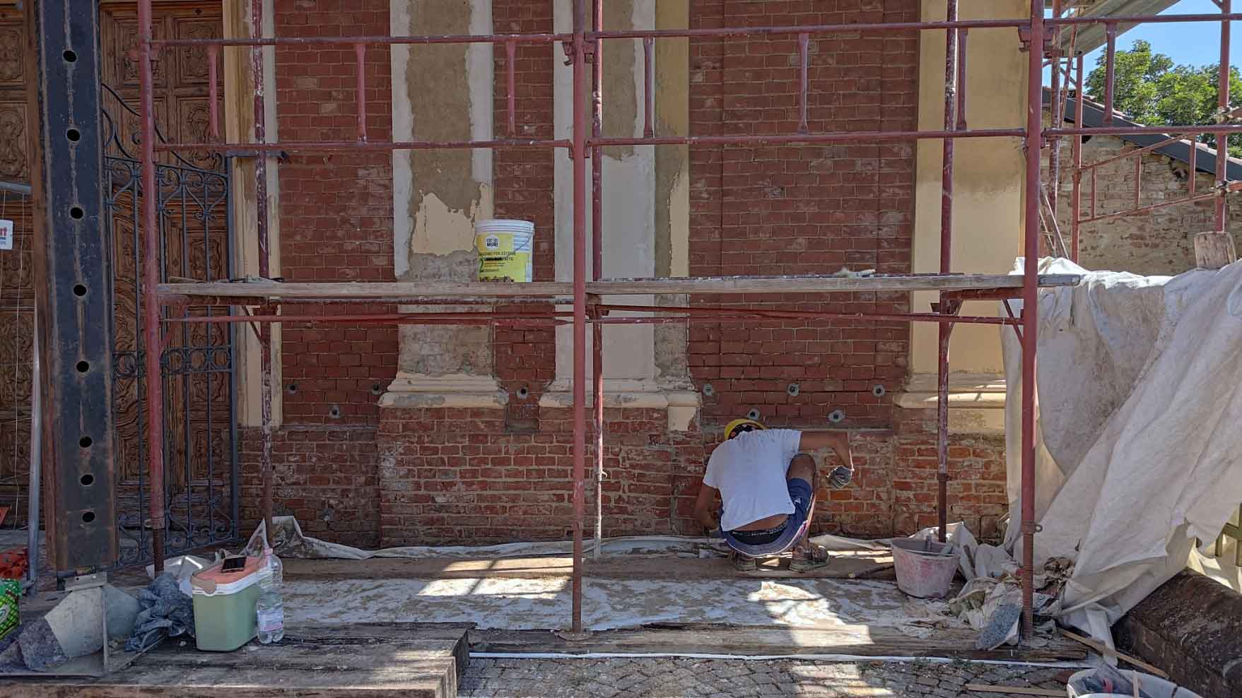 Il lavoro ha interessato l’intero involucro esterno, partendo da una meticolosa opera di risanamento degli intonaci sulla facciata e sui prospetti delle navate. Gli intonaci danneggiati sono stati interamente ripristinati per restituire all’edificio l’aspetto e la coesione strutturale originari.