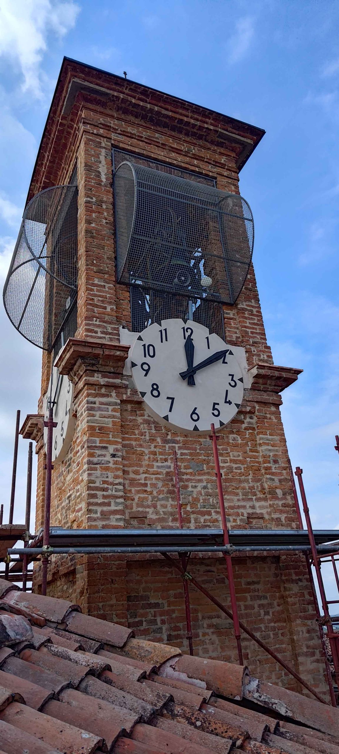 Cruciale è stato l’intervento di pulitura e trattamento delle murature a vista, in particolare quelle del campanile, oggetto di un particolare intervento di “cuci-scuci”, volto a garantire la stabilità e la durabilità nel tempo. Un elemento di grande valore simbolico recuperato è l’orologio del campanile, che è stato fedelmente riprodotto e ripristinato nella sua funzione.